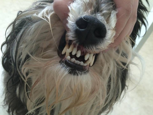 Kaikkea näiden karvakamujen kans voi sattua. Tästä hammas äksidentistä on jo päälle viikko jos en ihan väärin muista. Oltiin Toten ja Paronin kanssa ulkona nurmikentällä ja pojat sai juosta vapaana. Siinä nämä kaksi sitten kohelsi menemään tavalliseen tapaansa. Pienen pystypainin jälkeen Toten parta olikin sitten veressä. Ajattelin että jaahas, Totte varmaan puri vahingossa kieleensä tms. Kipeää ei kuitenkaan tuntunut ottavan kun ei herra sanonut mitään. jos verta ei olisi tullut en olisi tajunnut koko asiaa. Mentiin sitten autolle pyyhkimään naamaa. Katselin ja katselin että mistä se veri tulee kunnes huomasin. Ylärivissä sojotti yksi hammas aivan ylöspäin. Ei perkele. Tässä kohtaa verentulo oli jo loppunut kokonaa. Verta ei siis tullut kovin paljoa. Pienen hetken mietittyäni päätin että kokeilen irtoaisiko hammas. Eihän se enää ollut juuri millään kiinni ikenessä. Niin hammas otettiin pois. Totte ei tuntunut tajuavan olenkaan että hammas irtosi. Tuskin tajuaa vieläkään.